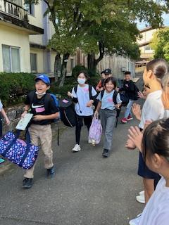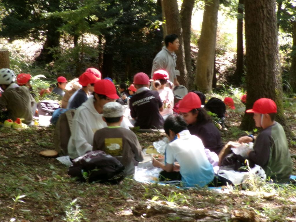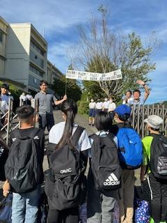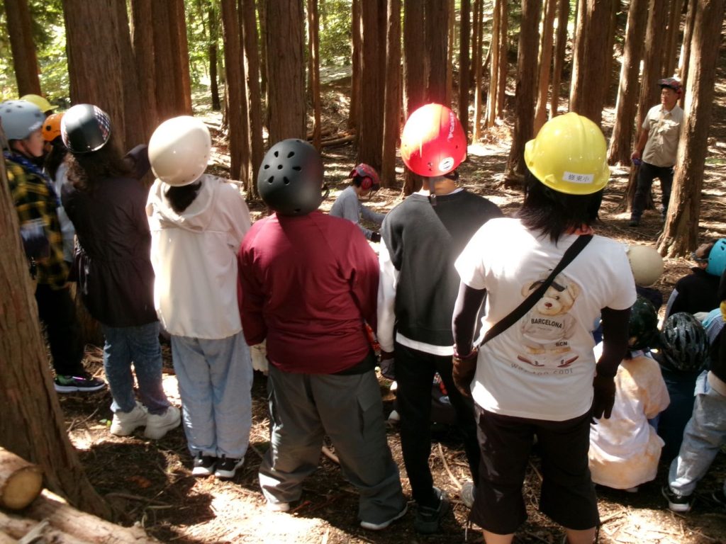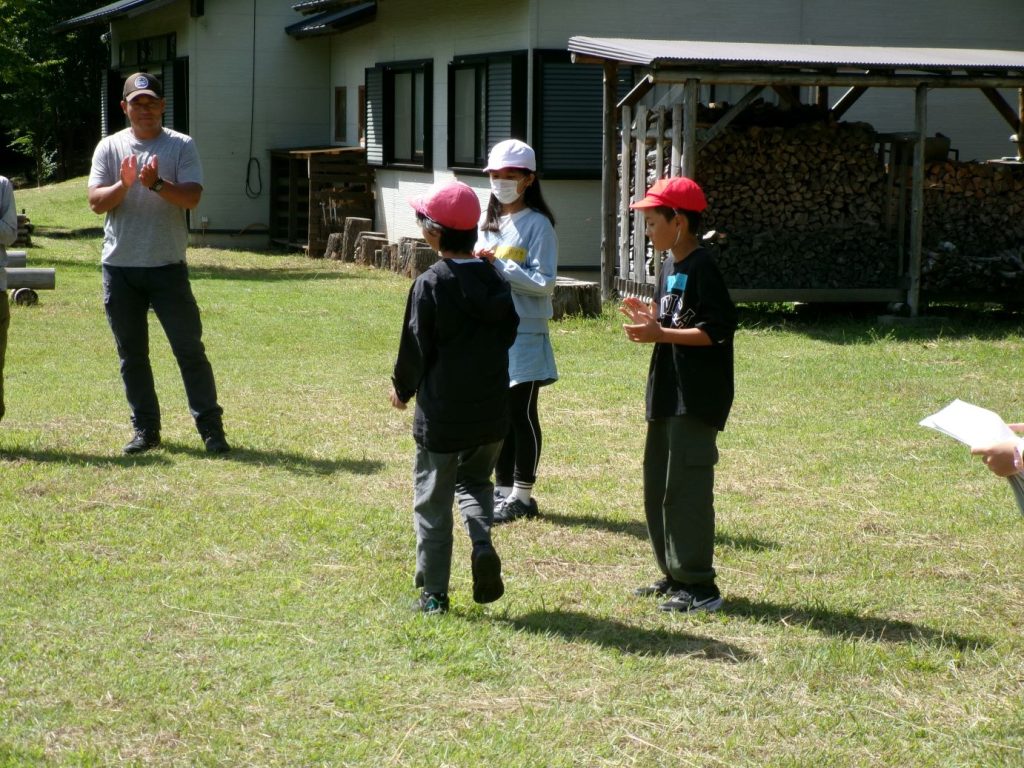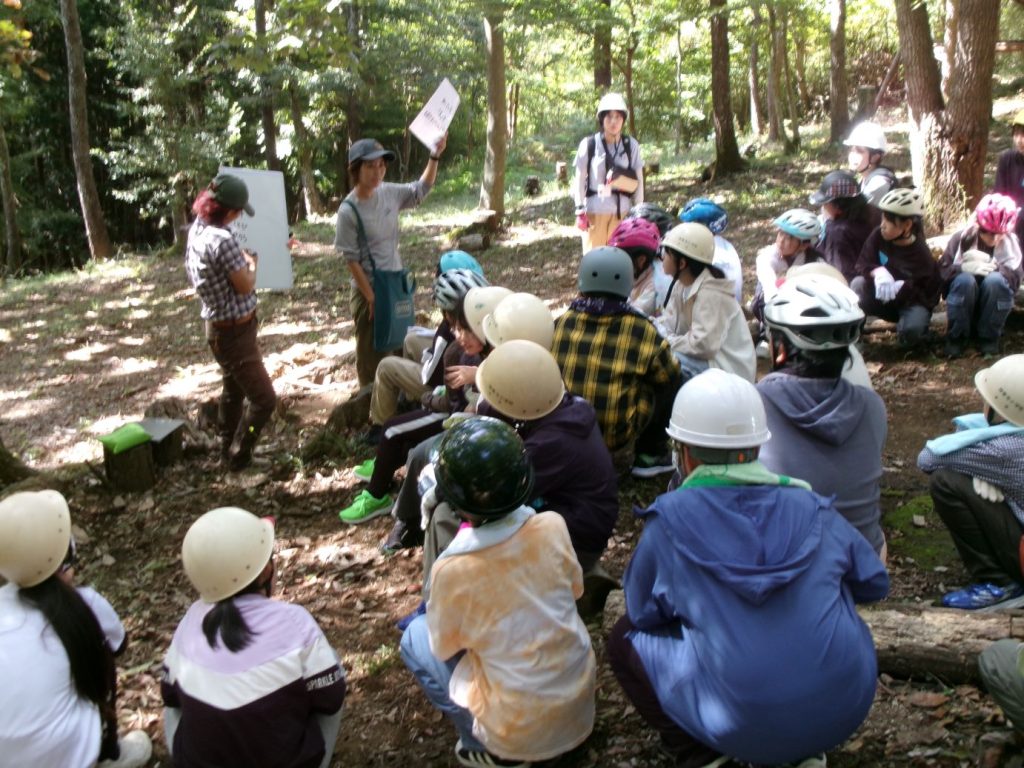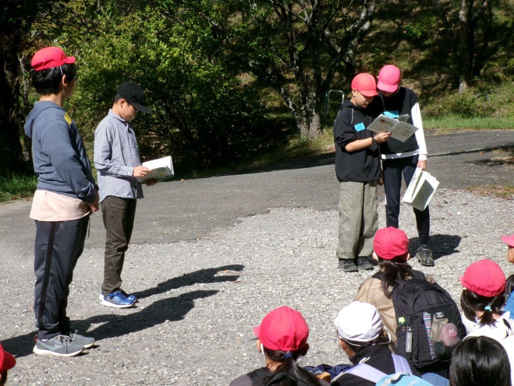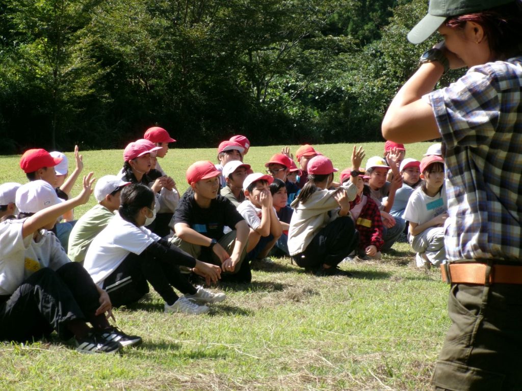 9/25 3校合同自然体験教室 一日目 2025年9月26日 sses_admin 今年の自然体験教室は熊坂小、修善寺東小と合同で桃沢野外活動センターで実施しました。出発の場面では全校でお見送りをしてもらうというサプライズ。午前中はmataneさんで林業について学びました。