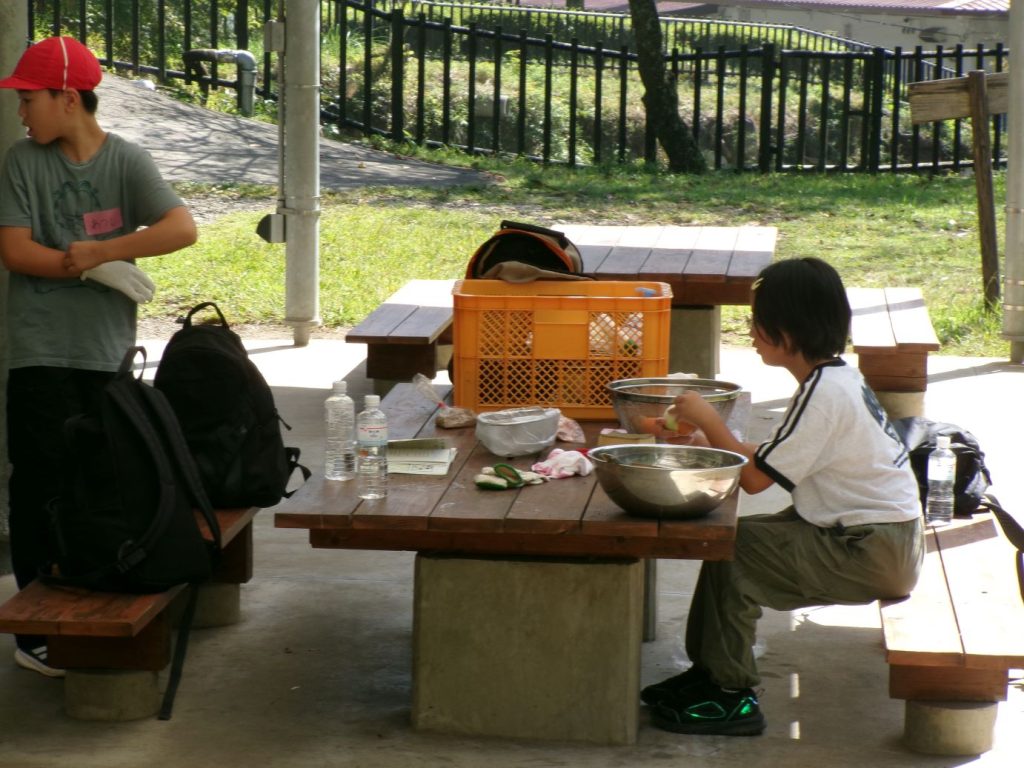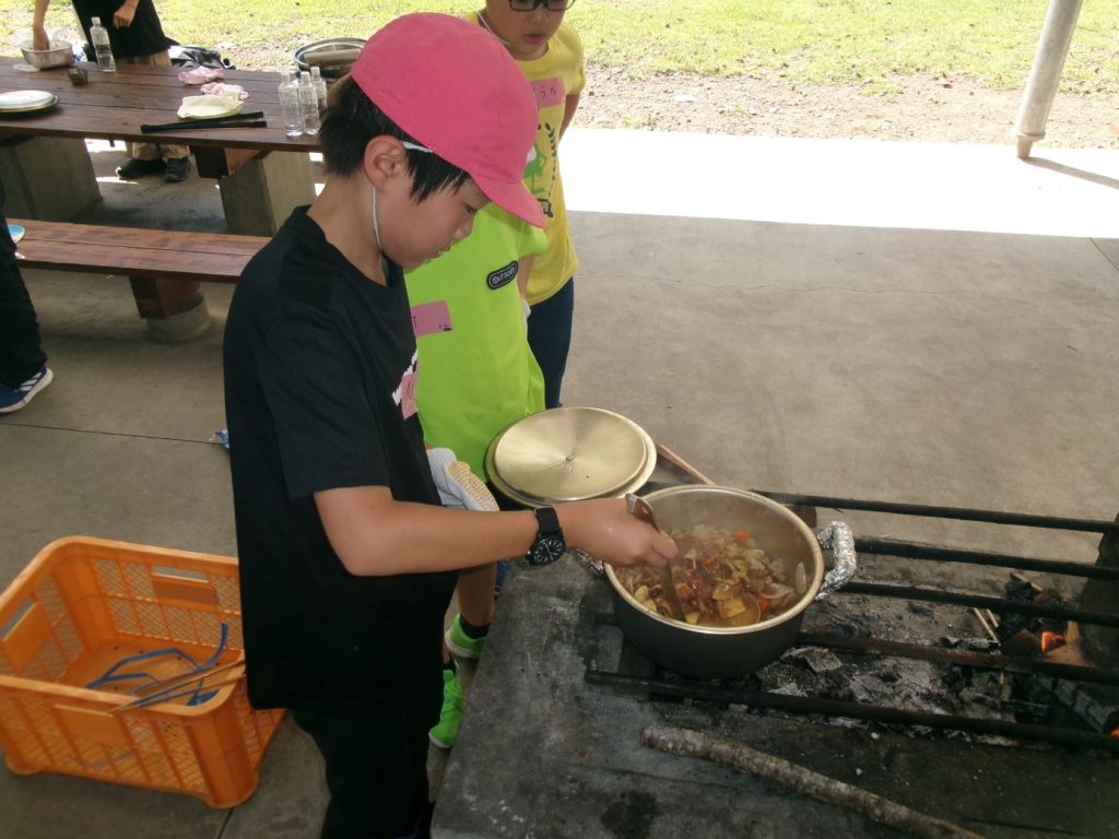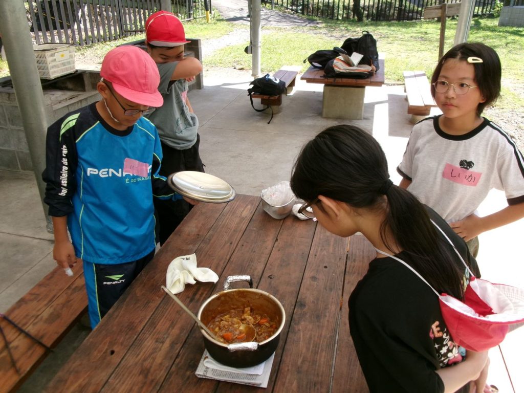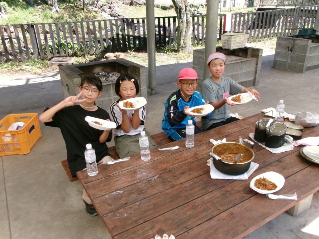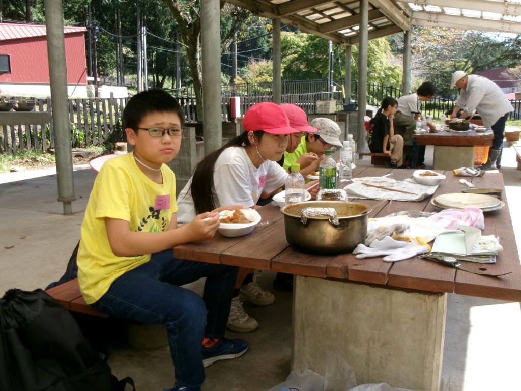二日目のメインの活動は飯ごう炊さんです。修善寺小の子供たちは事前に教頭先生からレクチャーを受けていたので、3校の中で一番最初に火がつき、おいしいカレーを一番に食べることができました。全員で参加し、全員が無事帰校することができました。