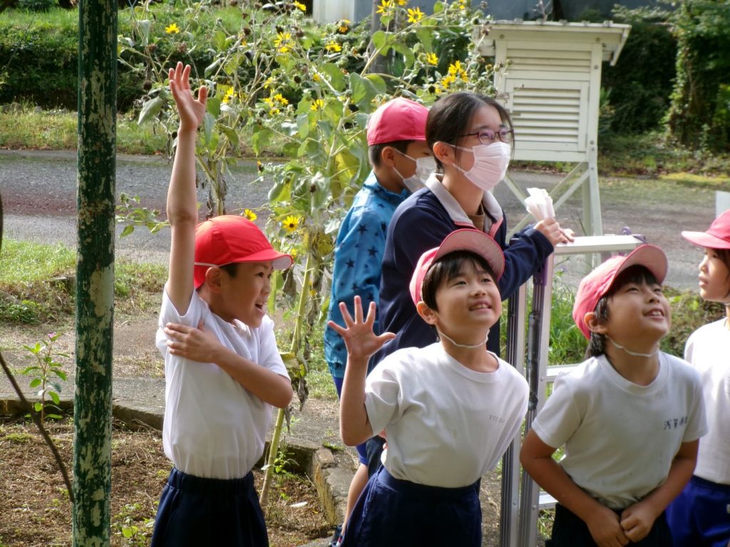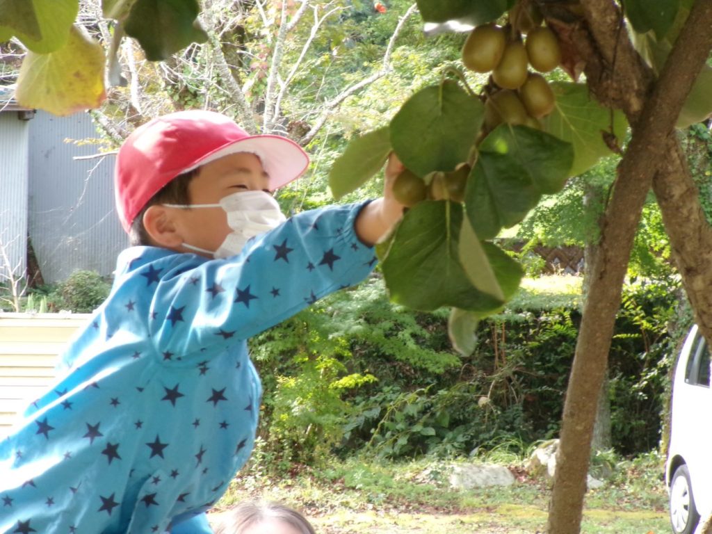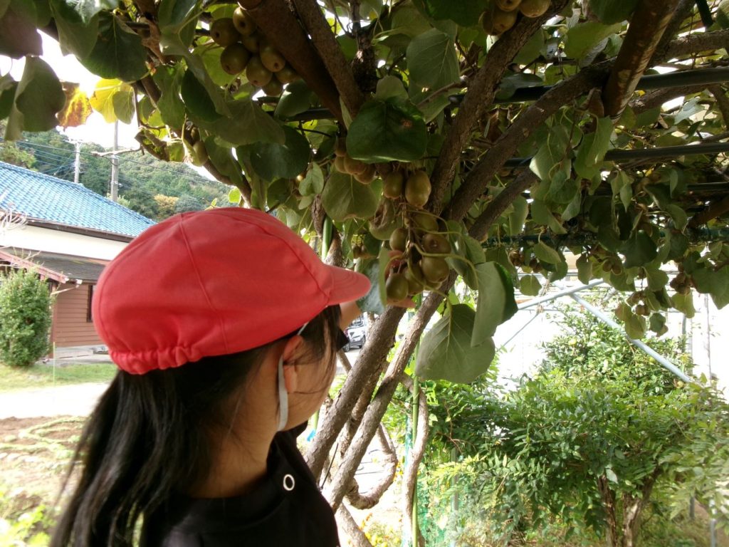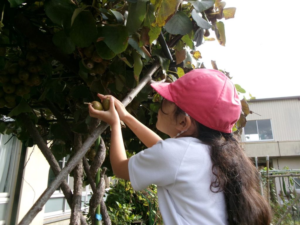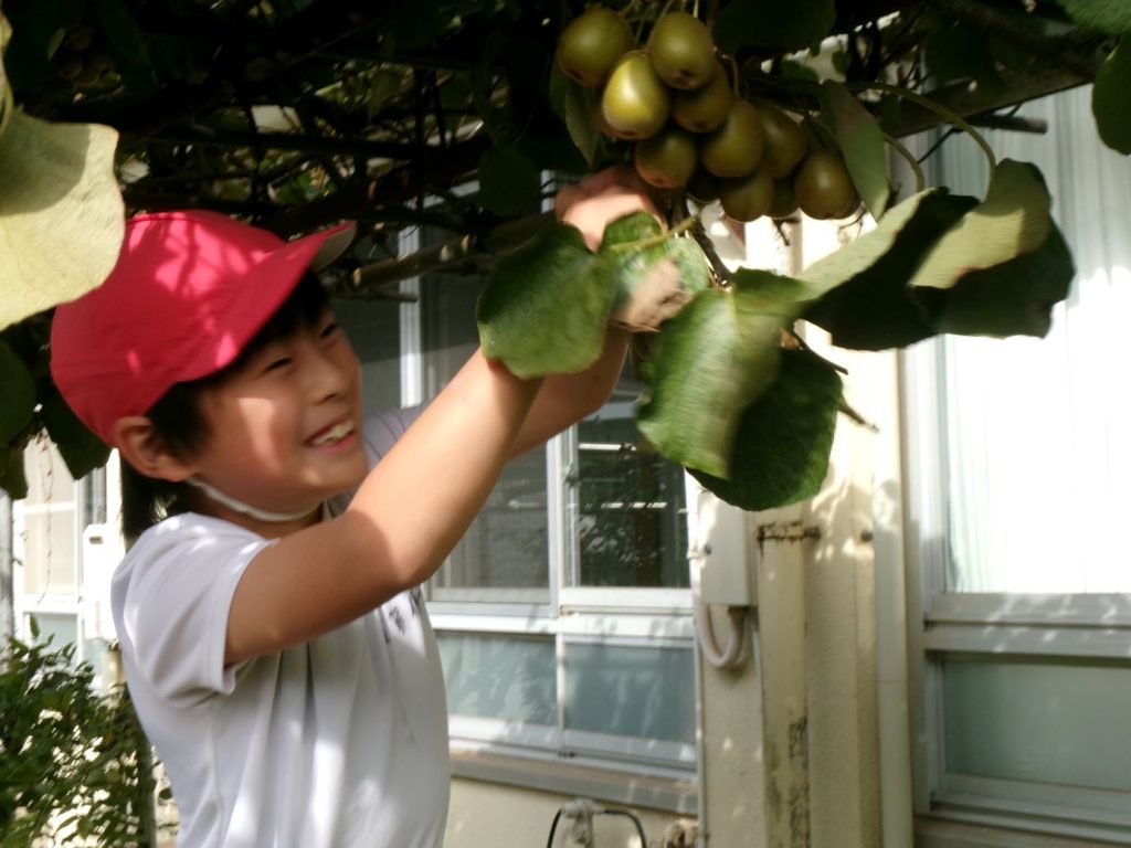 10/29 キウイ収穫 2025年10月29日 sses_admin 校長室の裏にはキウイの木があります。今年はなり年のようで、たくさんのキウイがなりました。今回は2年生が収穫に来てくれました。脚立に乗り、大きなキウイをもぎとり、うれしそうな顔でいっぱいでした。