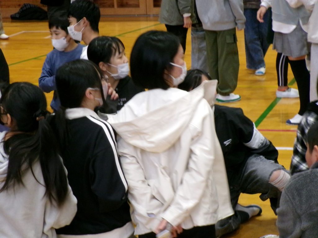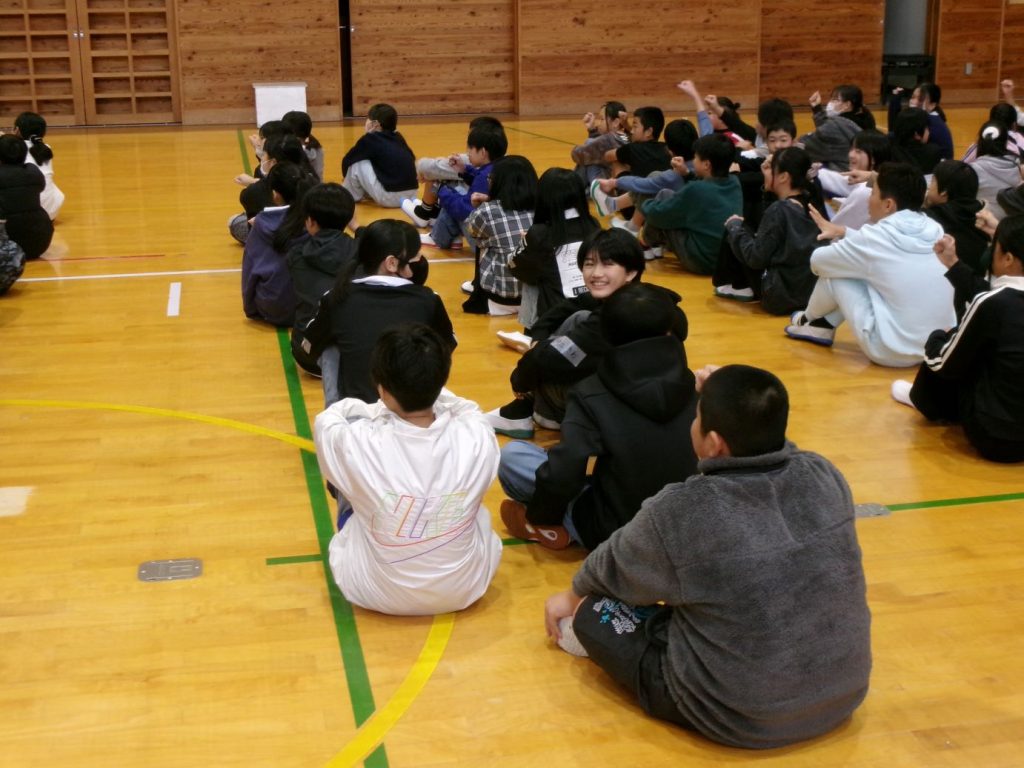 11/27 市内小6交流会 2025年11月27日 sses_admin 天城小学校の体育館を会場にして、市内の小学校の6年生が集まり、交流を深めました。最初は緊張していたり、不安を感じていたりする様子がうかがえましたが、会が進むにつれて打ち解け、柔らかい表情が見られるようになりました。