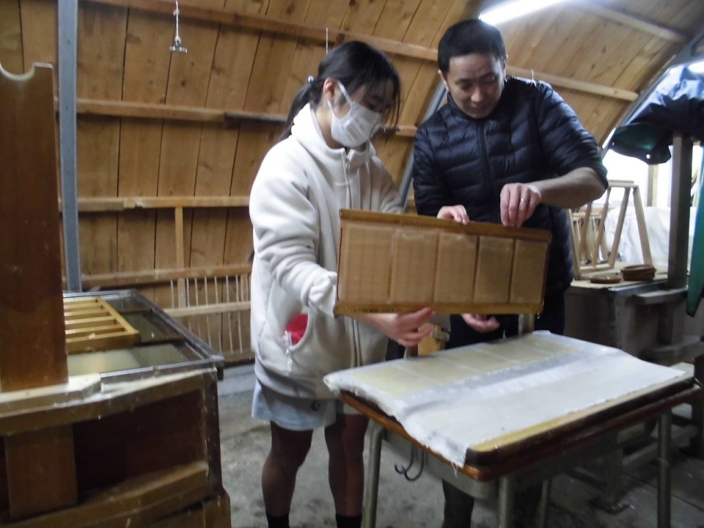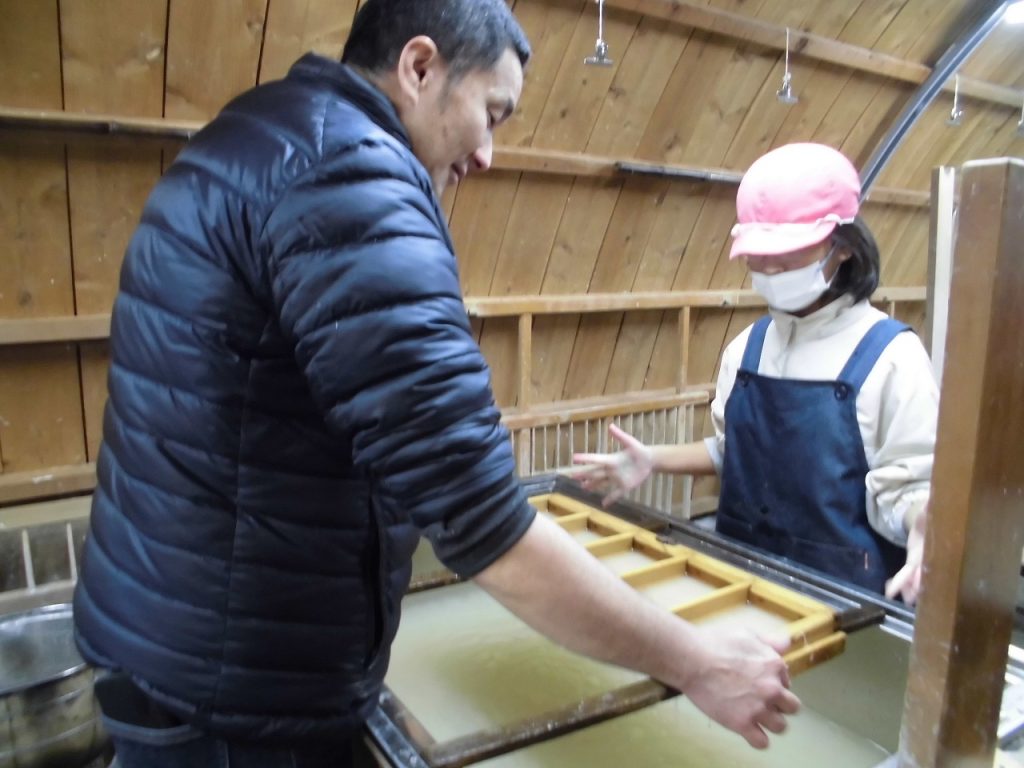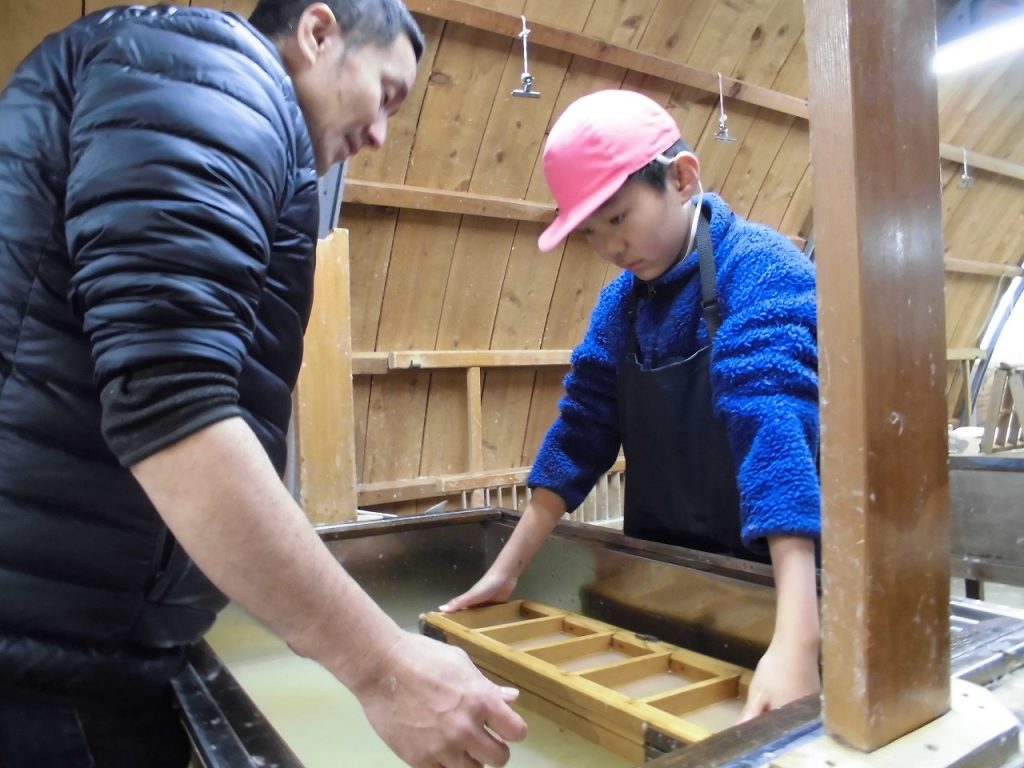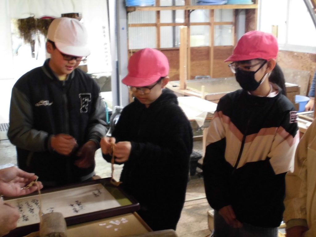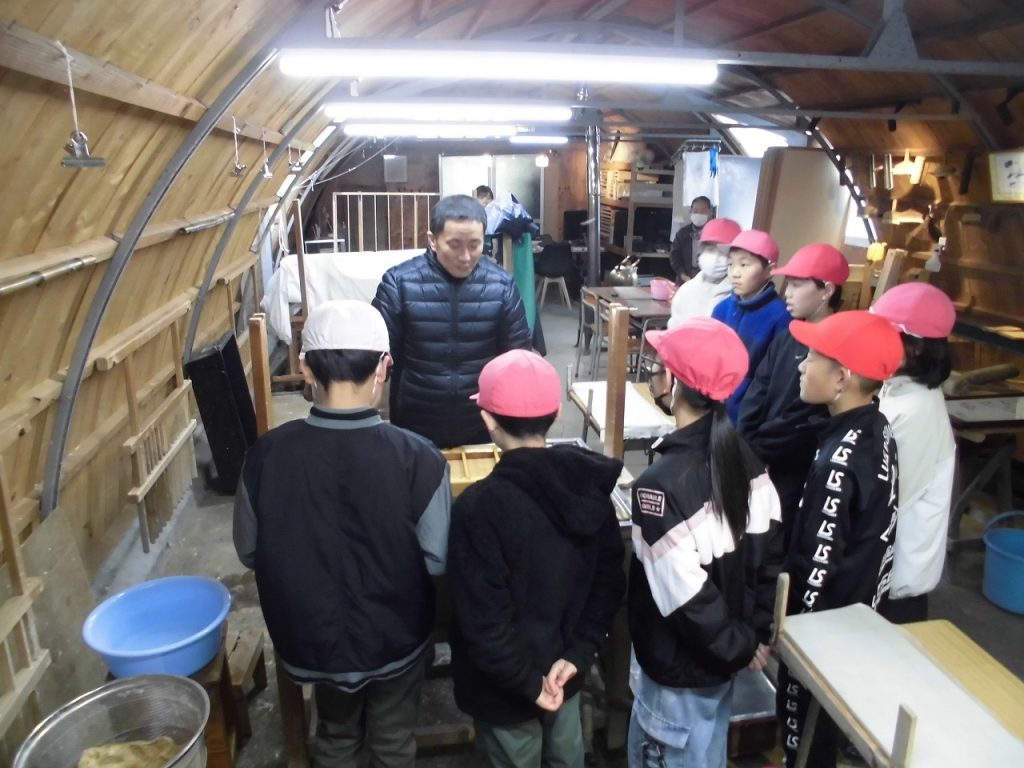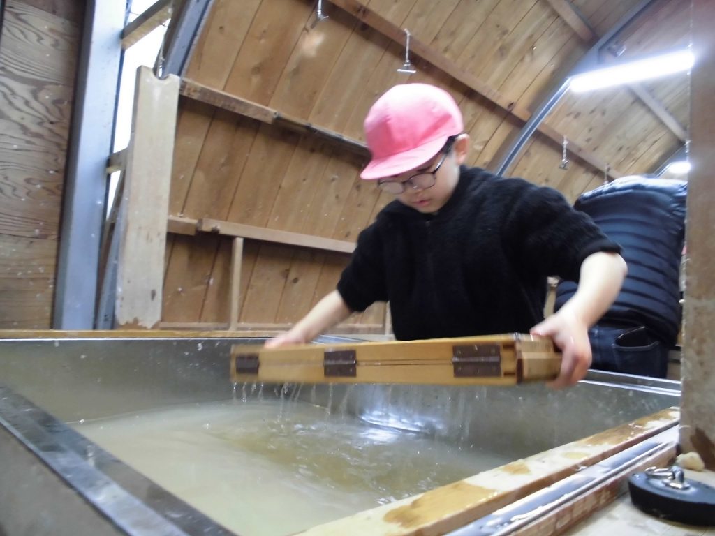 1/15 紙漉き体験・5年生 2026年1月16日 sses_admin 地域に伝わる伝統工芸、修善寺紙。6年生は自分の卒業証書を漉きますが、5年生はその前段として葉書を漉く体験を行っています。実体験を通して伝統工芸の良さを学んでいます。