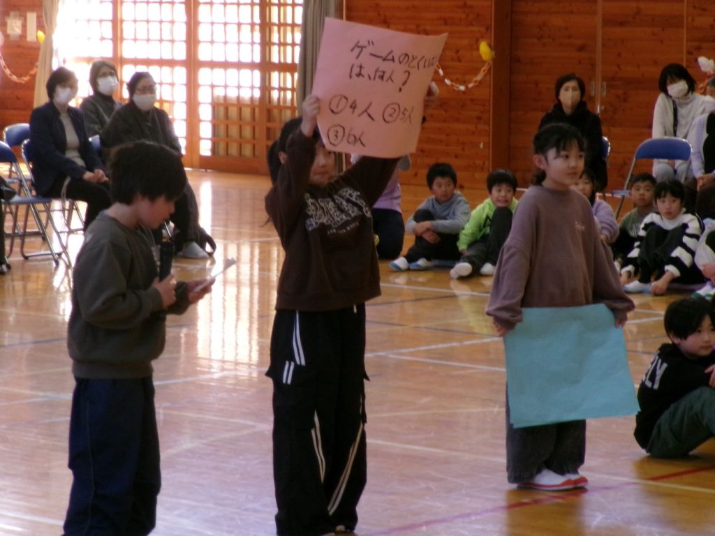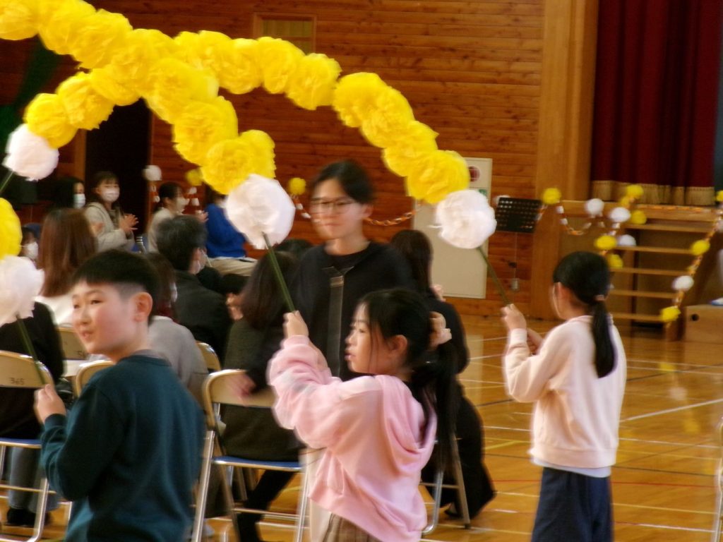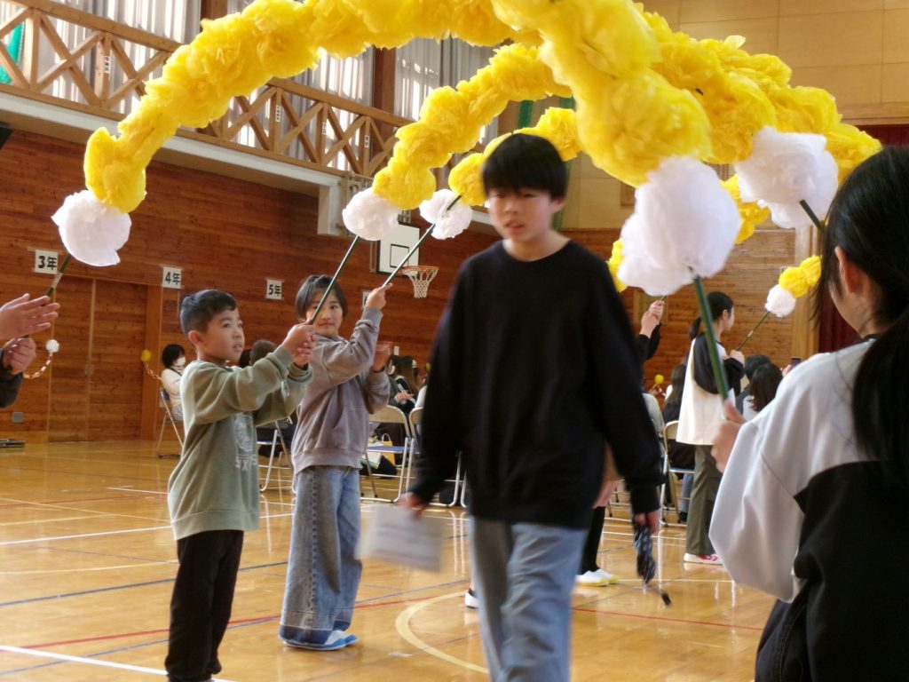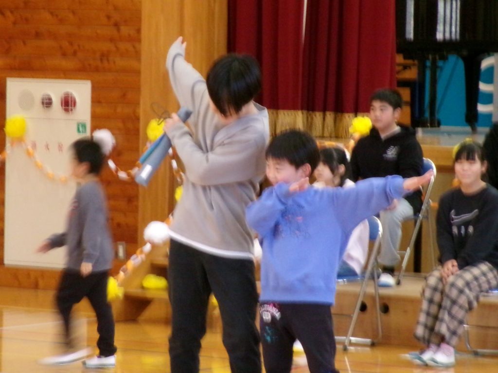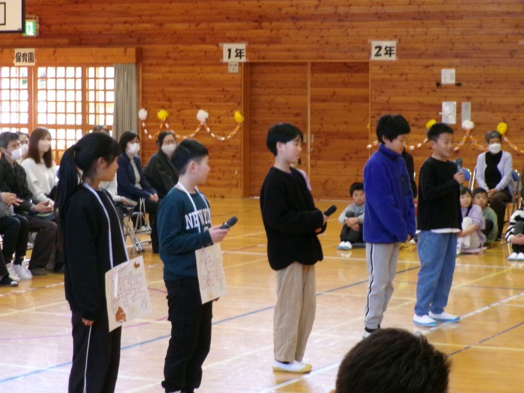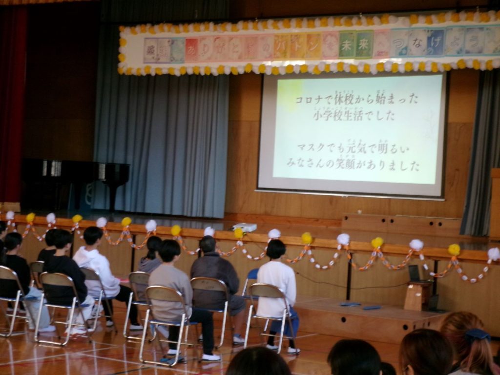 体育館にて6年生を送る会を行いました。4年生のチャレンジから始まり、歌・エール、クイズなどいろいろな出し物で6年生への感謝の気持ちを伝えました。どの学年も6年生への感謝の気持ちが表れた出し物でした。1年間、だるまっ子のリーダーとして活躍してくれた6年生、お疲れ様でした。