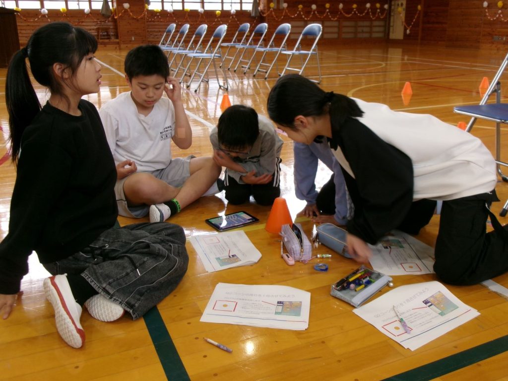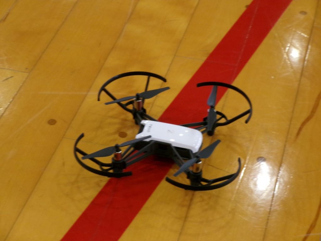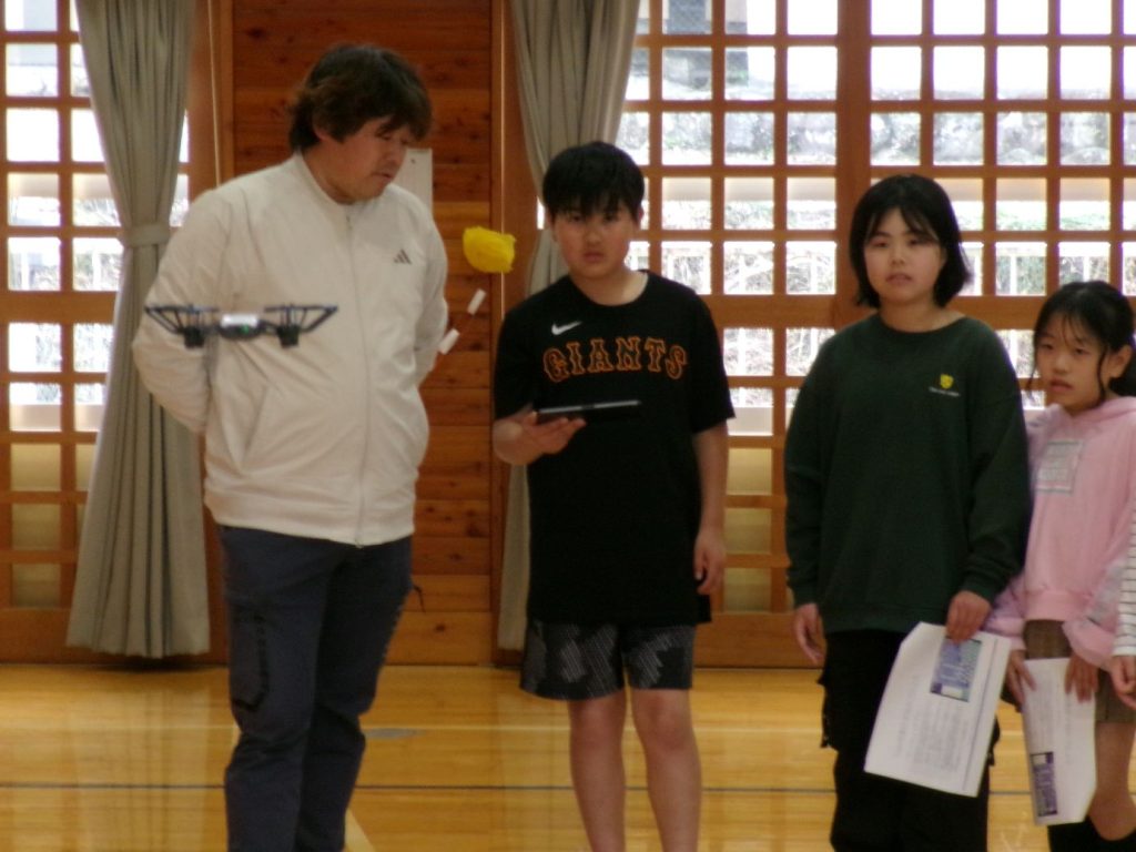 3/6 ドローン教室(4年生) 2026年3月6日 sses_admin 5,6時間目に4年生はドローン教室を行いました。2つのグループに分かれて、ドローンを操作するプログラムを打ち込み、実際に意図したとおり動くか、確かめました。グループで協力し、成功したときには歓声があがりました。